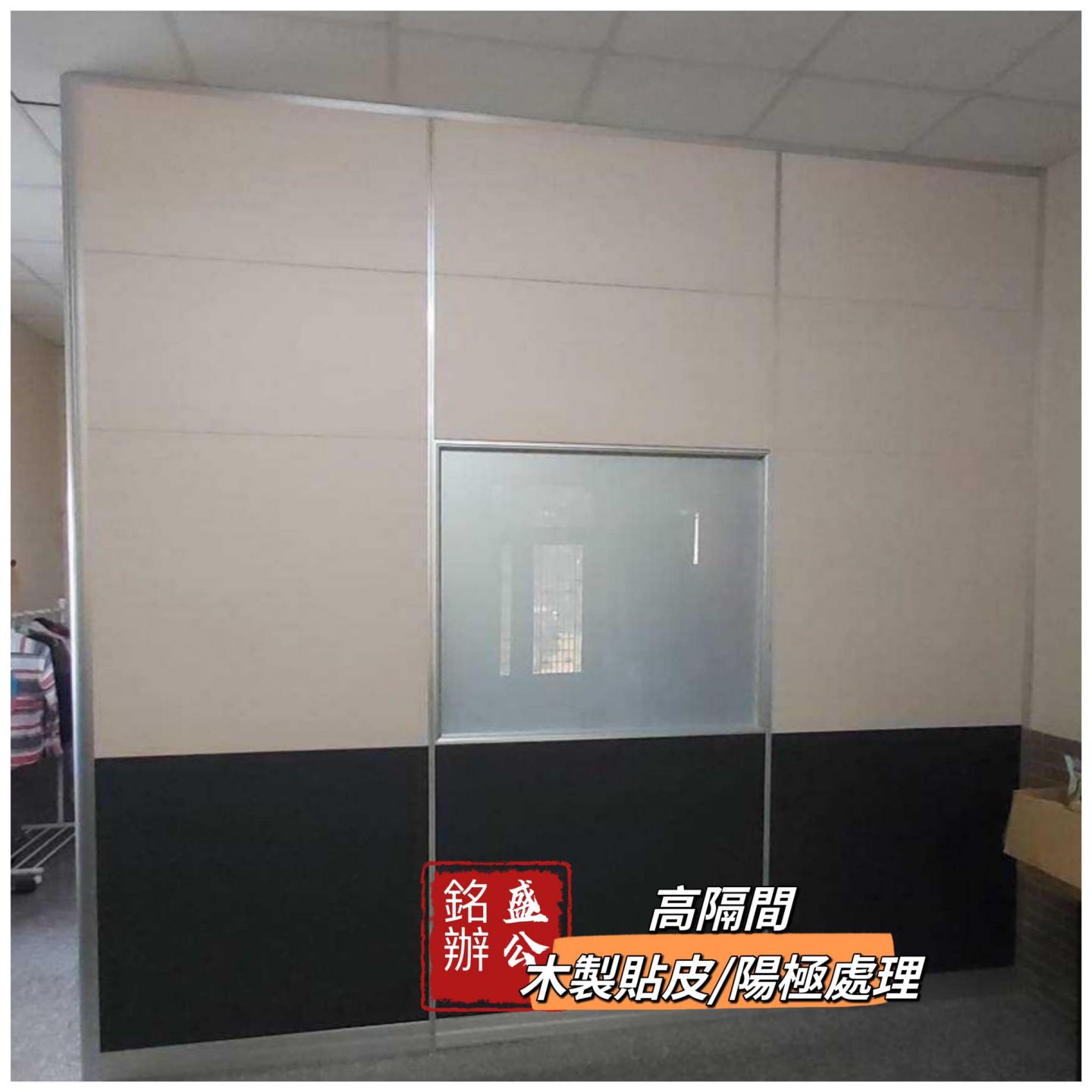 商品簡介:※ 6.0 cm 高隔間 – 框架皆為鋁材☆ 木製高隔間 / 邊框 – 陽極處理 (原鋁色) - $ 2,100元起 ~ ■ 邊框烤漆:黑、優美白、深灰色。 【需加價計算之】☆ 玻璃高隔間 / 邊框 – 陽極處理 (原鋁色) - $ 2,800元起 ~ ■ 邊框烤漆:黑、優美白、深灰色。 【需加價計算之】 ■ 玻璃如需強化。【需加價計算之】☆ 鋼製高隔間 – 價格需洽詢。☆ 矽酸鈣板高隔間 -價格需洽詢。☆ 材質及加購選擇:◆ 木製 - 提供多種色卡挑選。◆ 玻璃 - 清玻璃 / 霧玻璃 / 條玻璃。◆ 拉窗 ◆ 內置式百葉窗